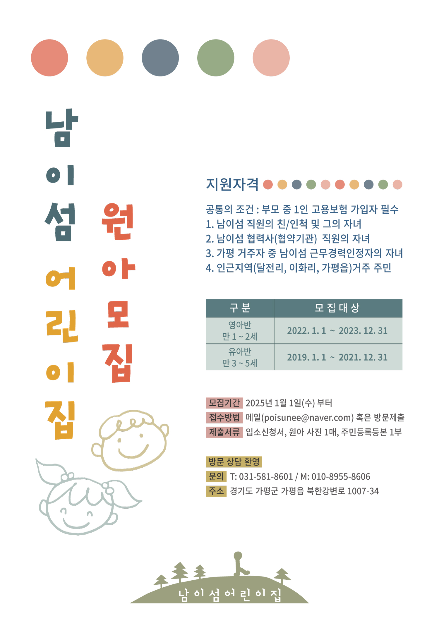 어린이집 메일 (poisunee@naver.com) 혹은 어린이집 방문제출